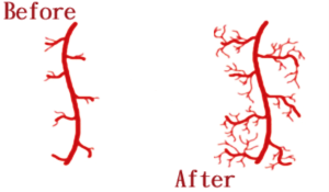 New blood vessels are generated in the penis as a result of low-intensity concentrated shockwave pulses applied by the device applicator during the shock wave ED treatment.
